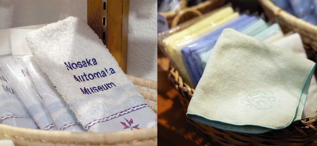 オートマタのロゴの刺繍入りのオフィシャルタオルとハンカチです。